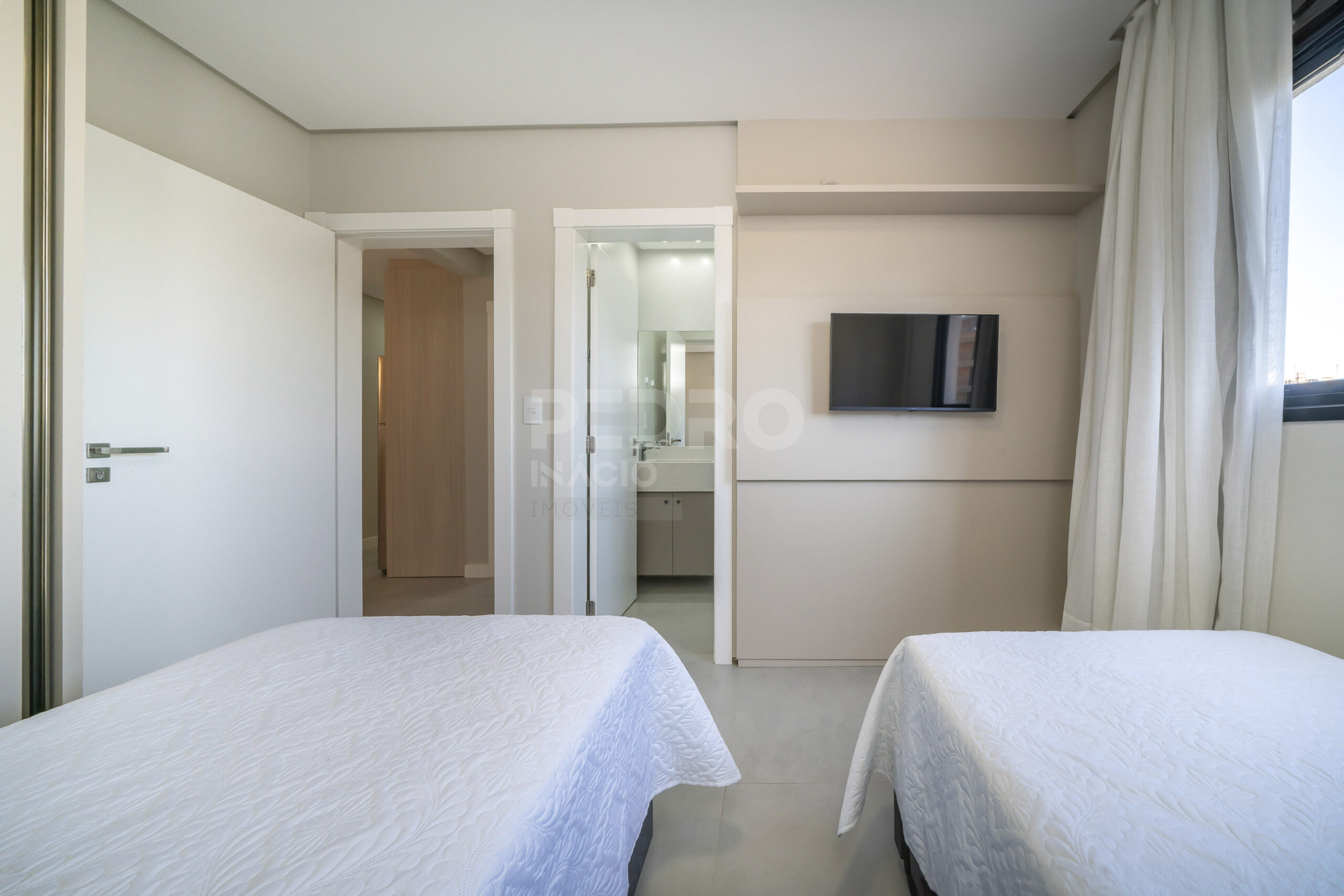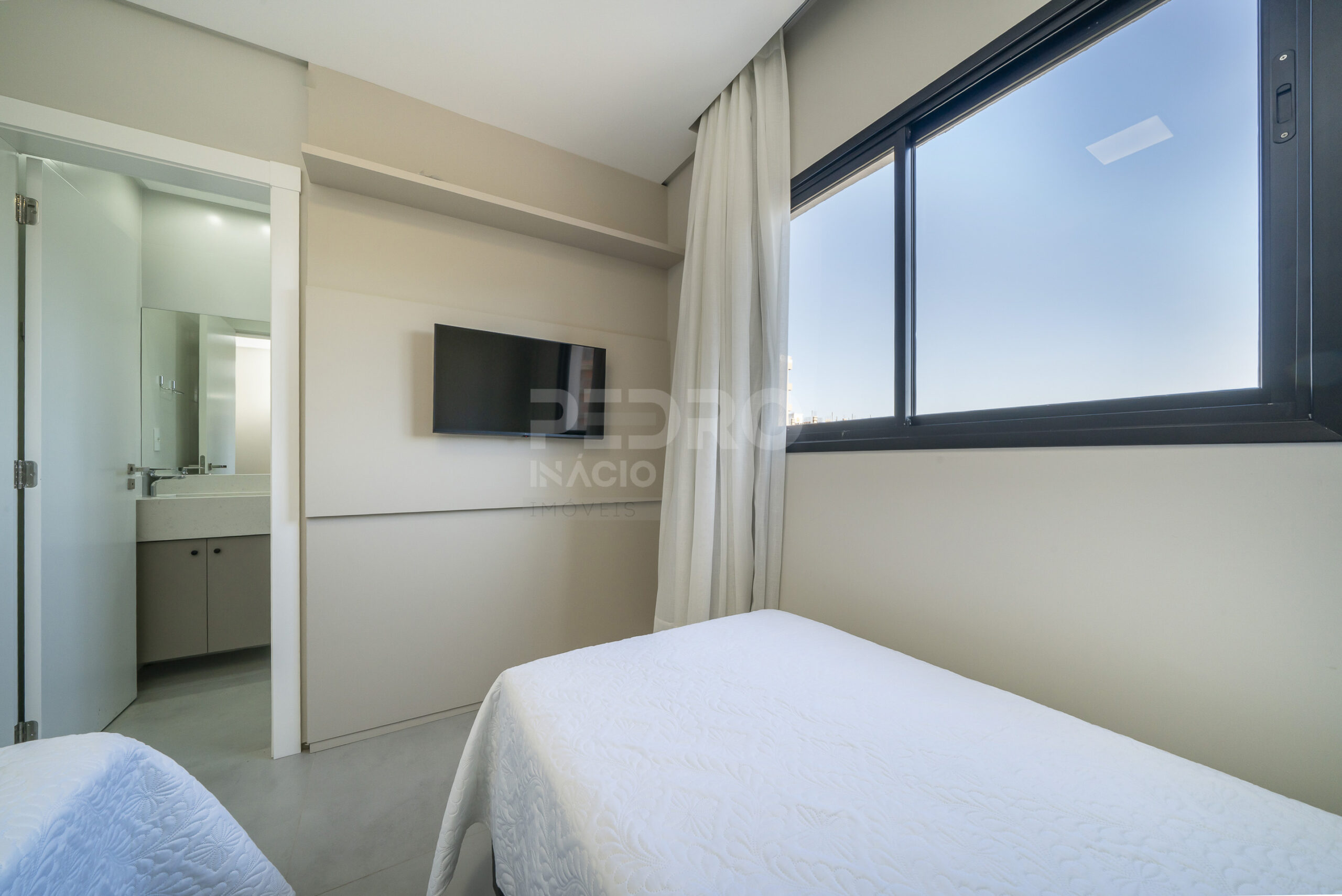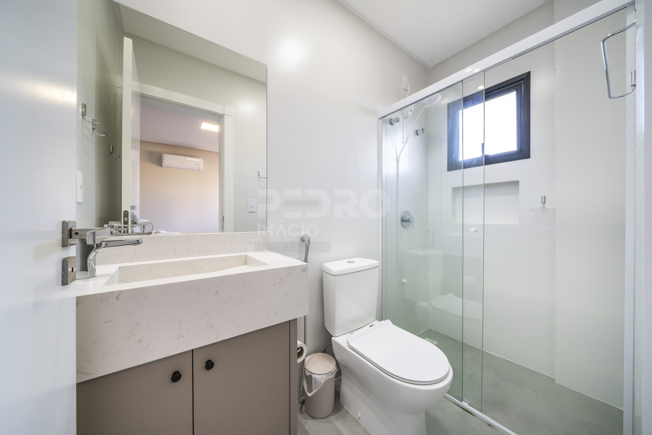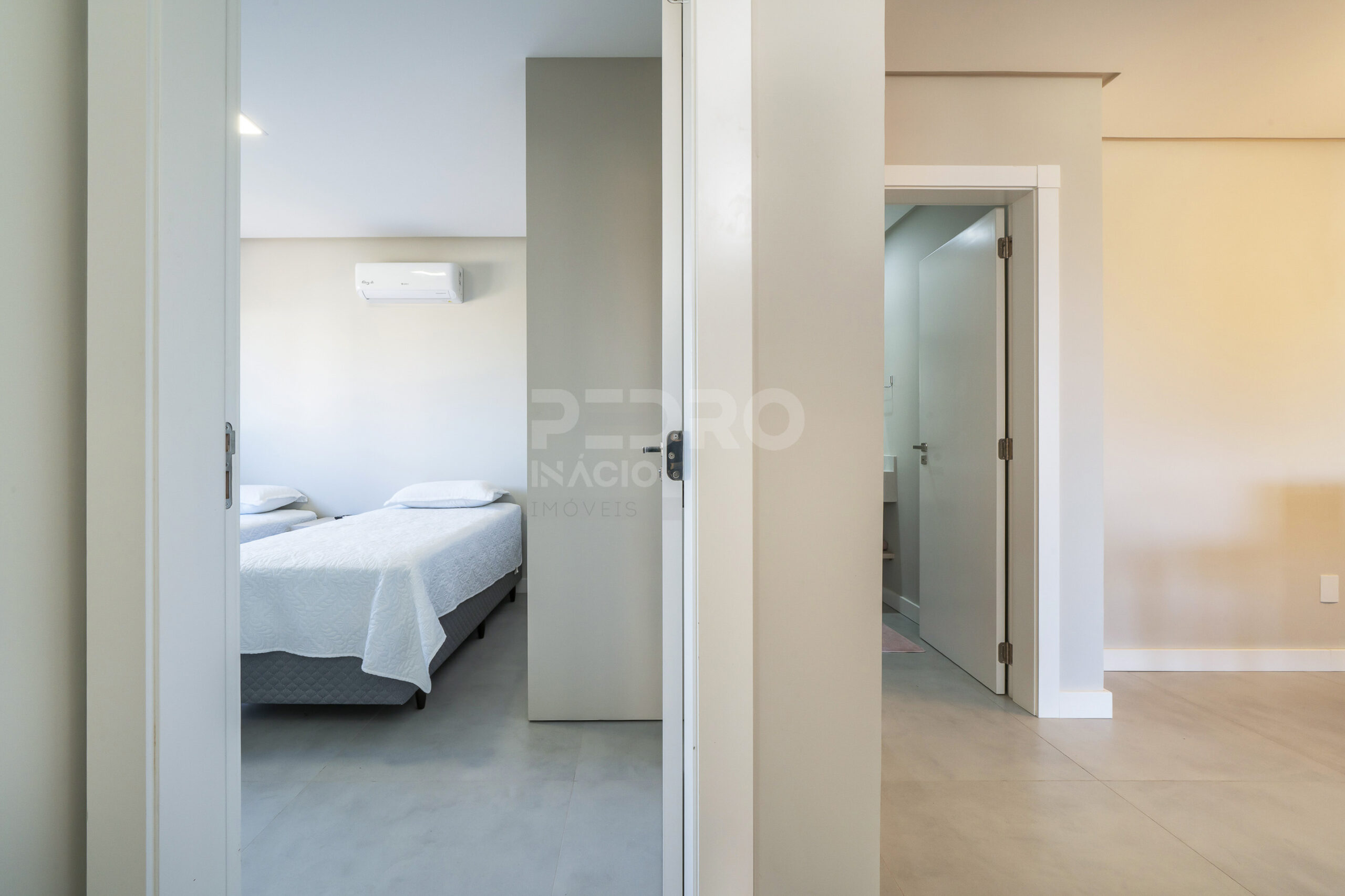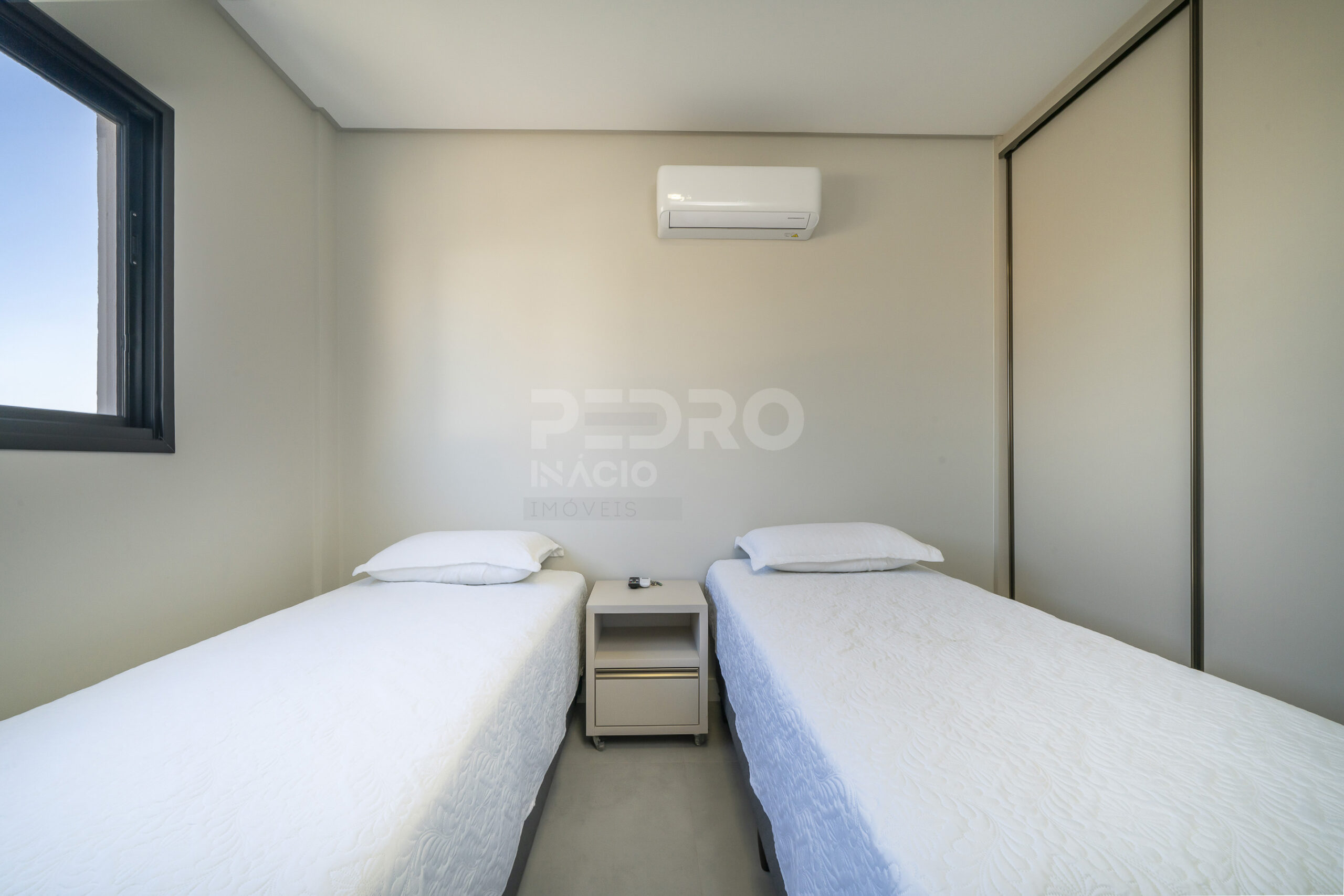 *Salas de estar e jantar integradas com sofá cama, tv e ar condicionado;