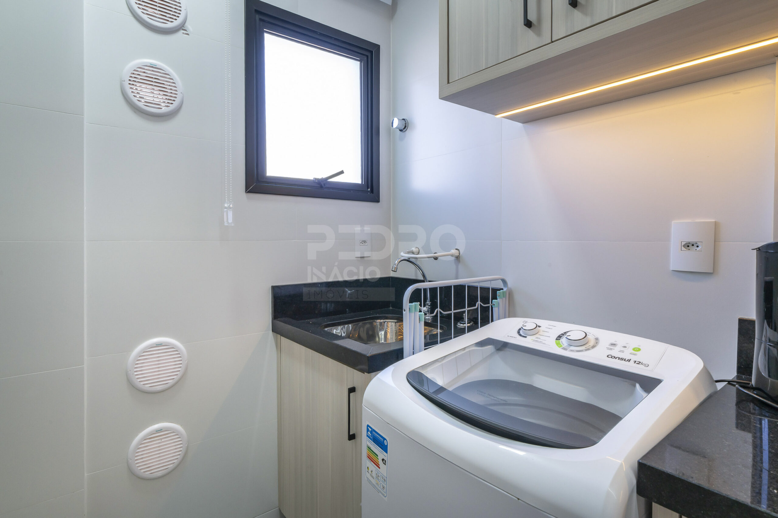 *Área de serviço com máquina de lavar roupas;
