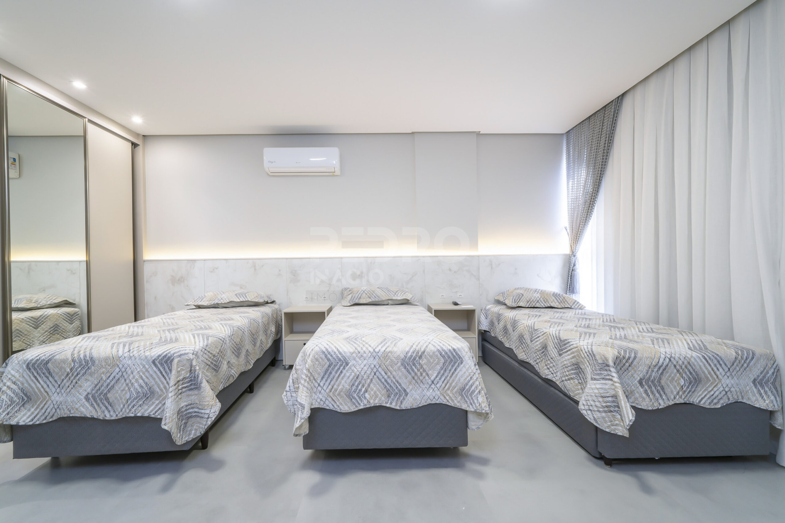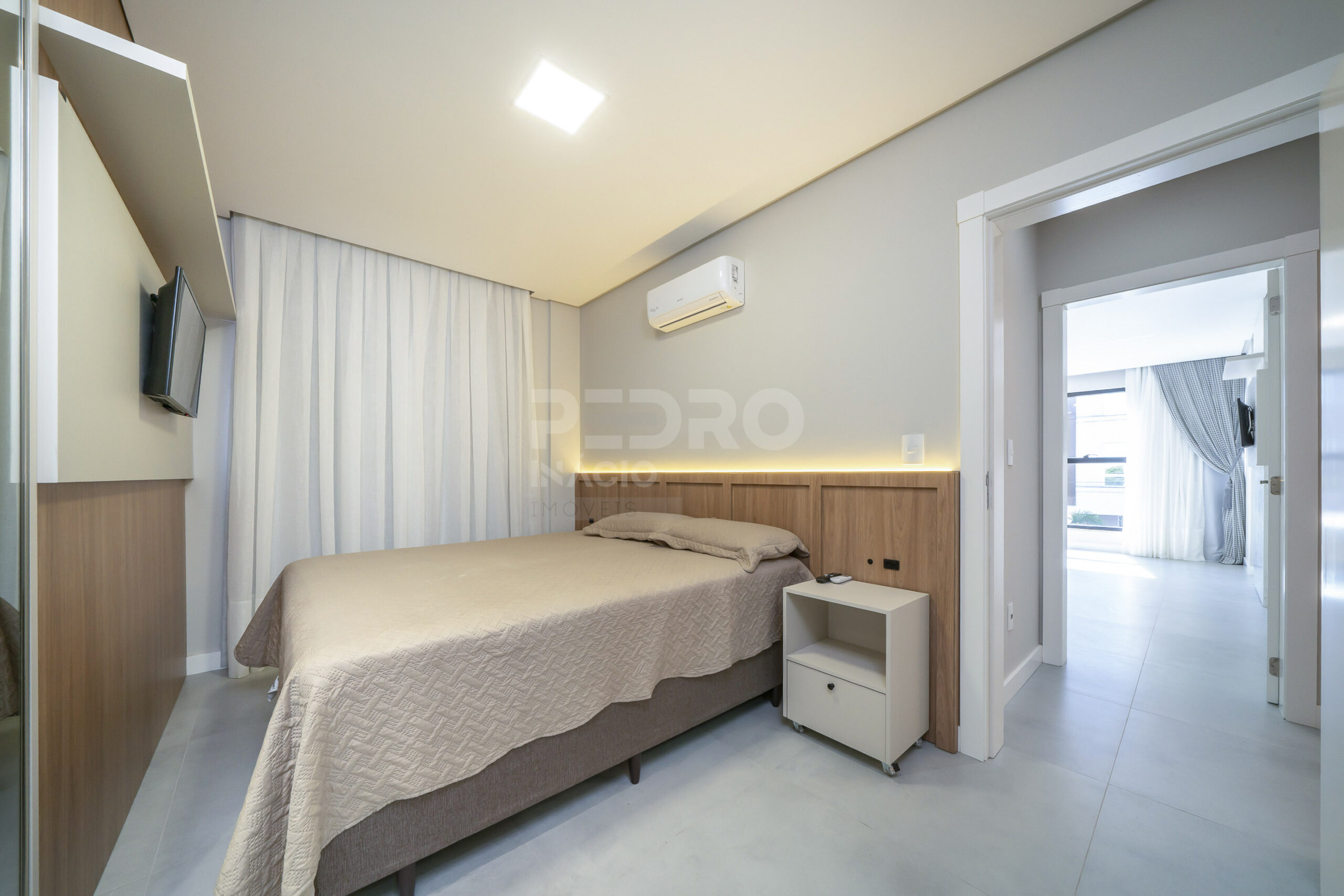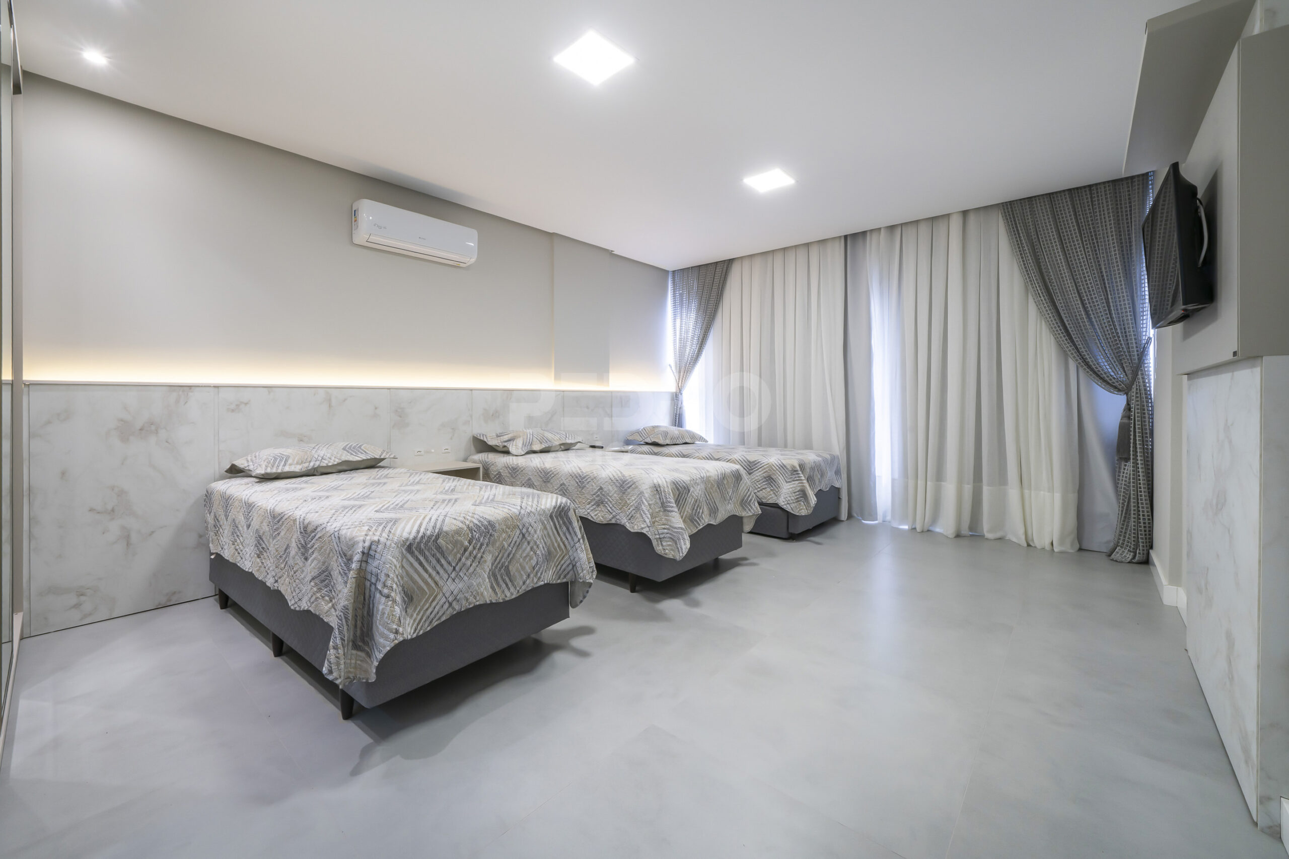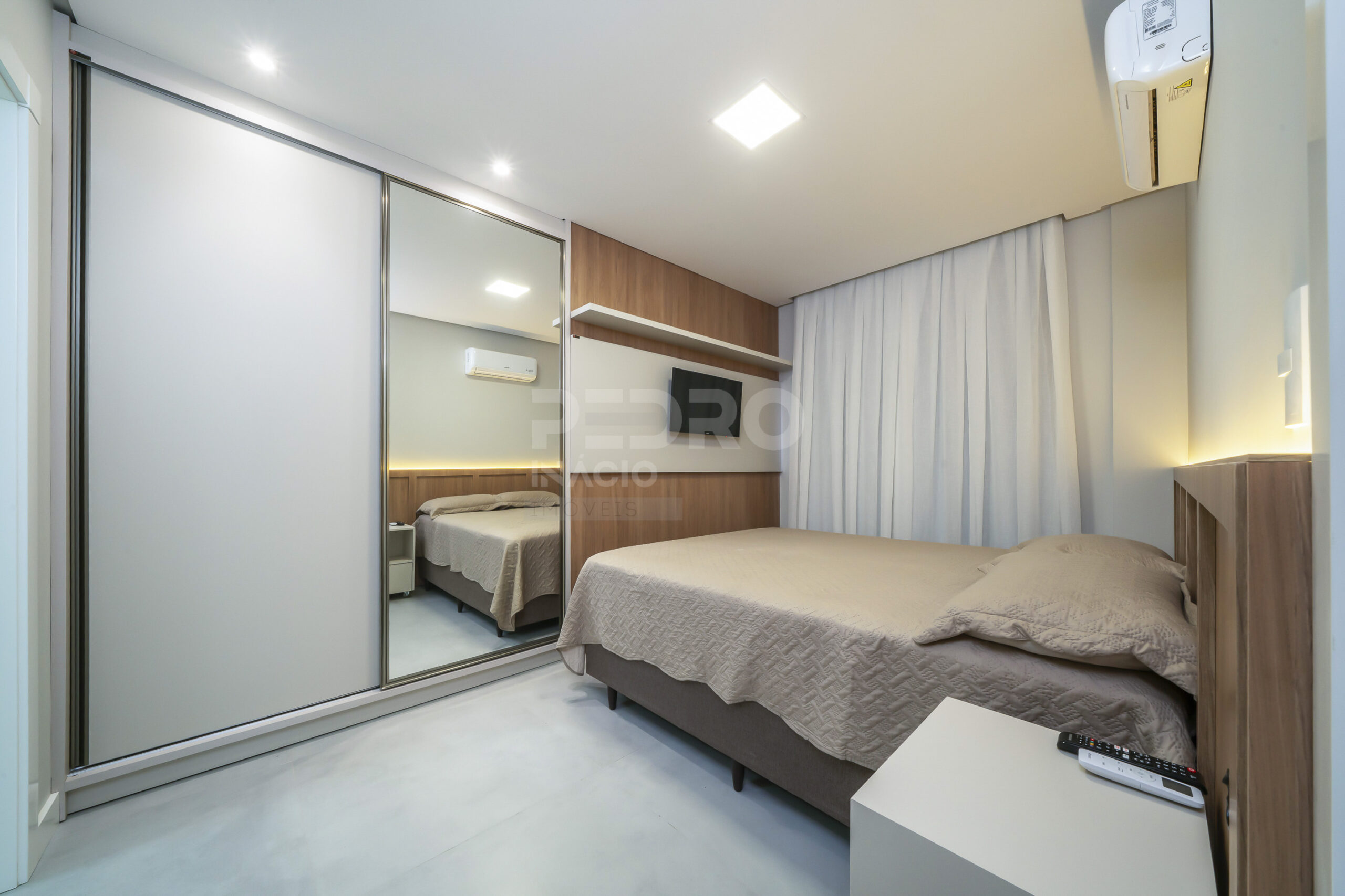 *Salas de estar e jantar integradas com sofá, tv e ar condicionado;