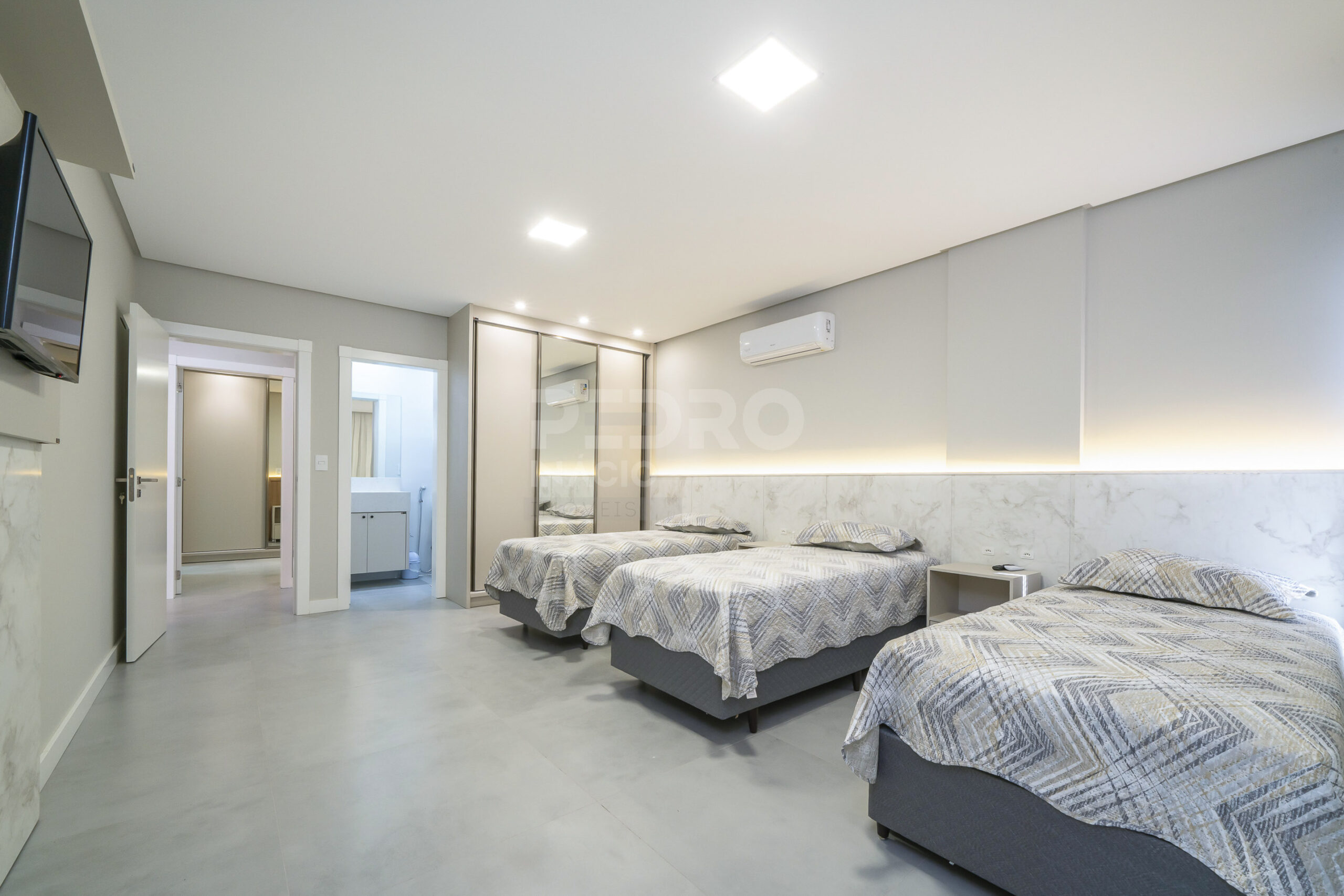 *01 suíte com cama de casal, tv e ar condicionado;