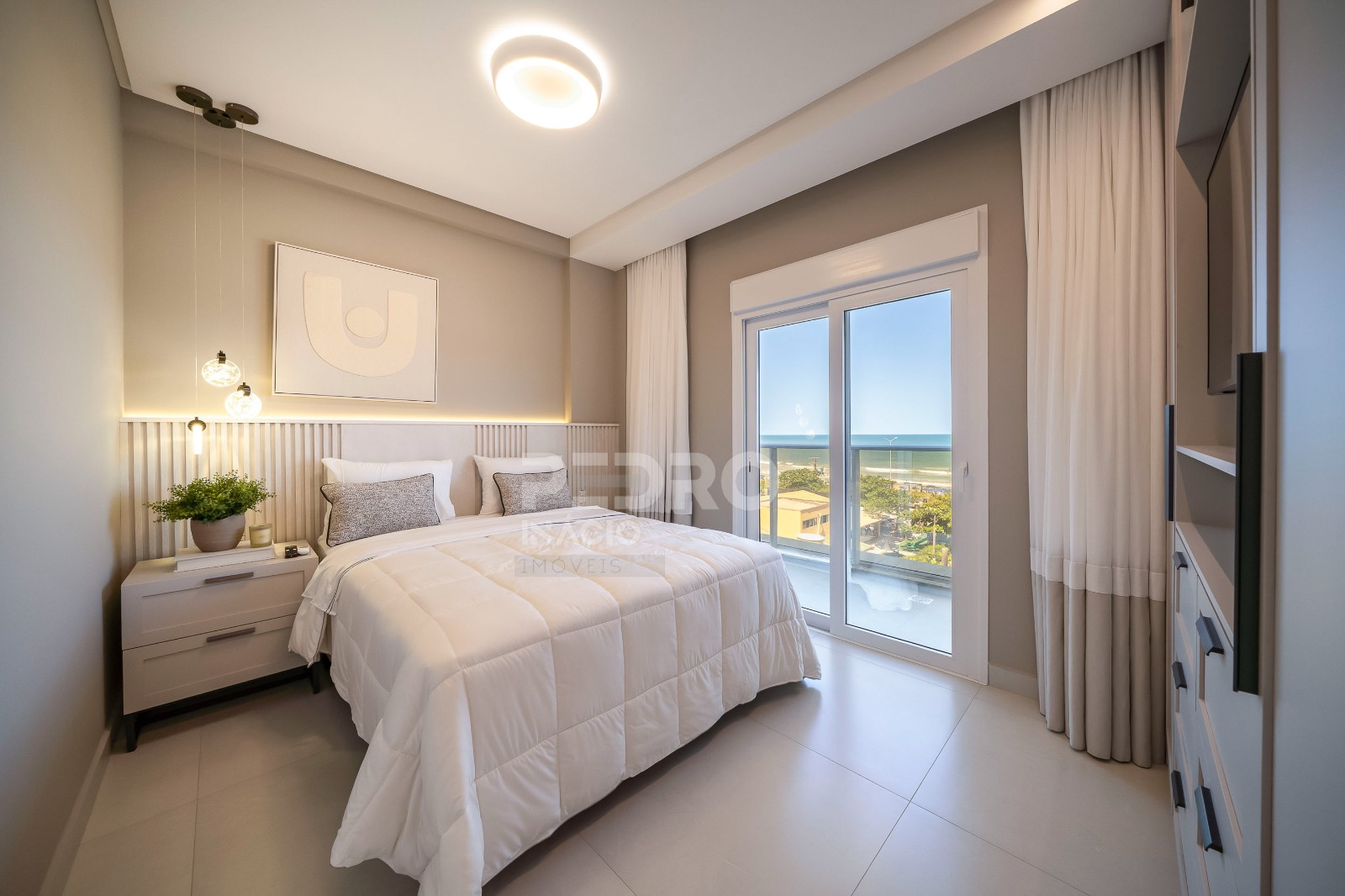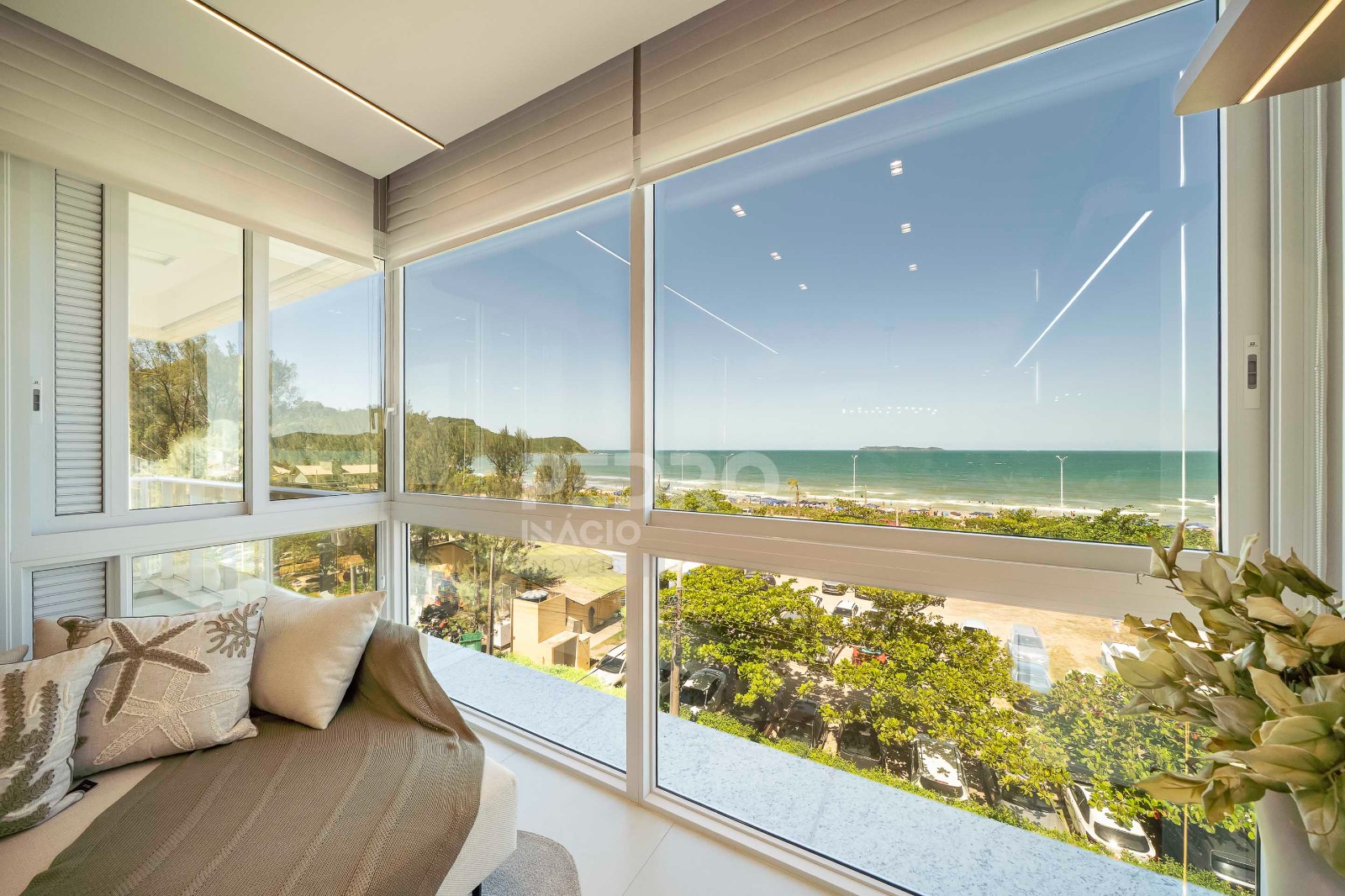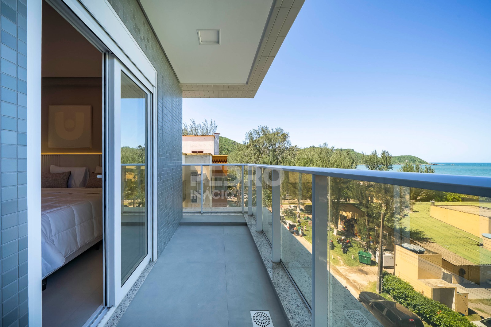 *01 suíte com cama de casal queen, ar condicionado, tv e sacada com vista para o mar;