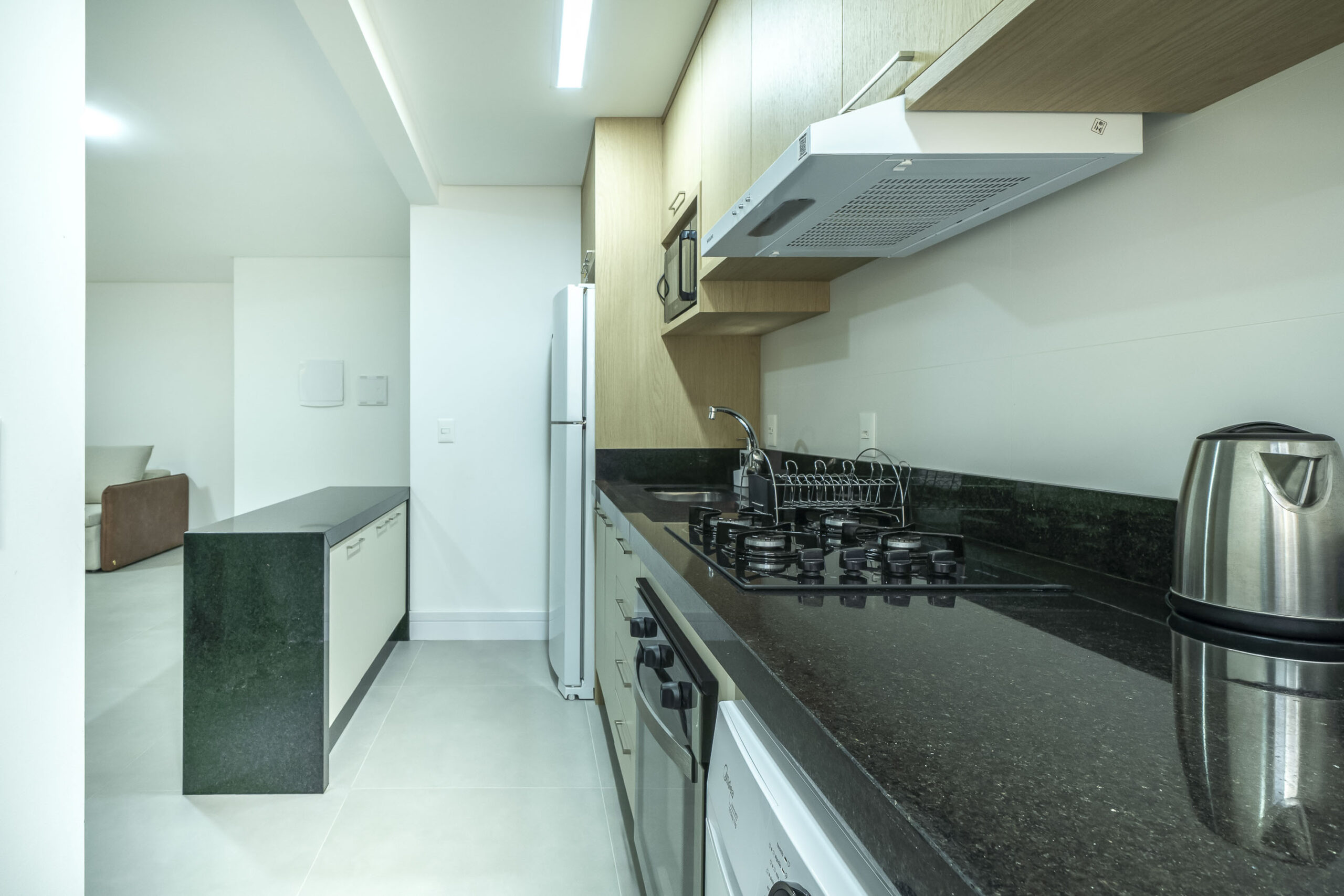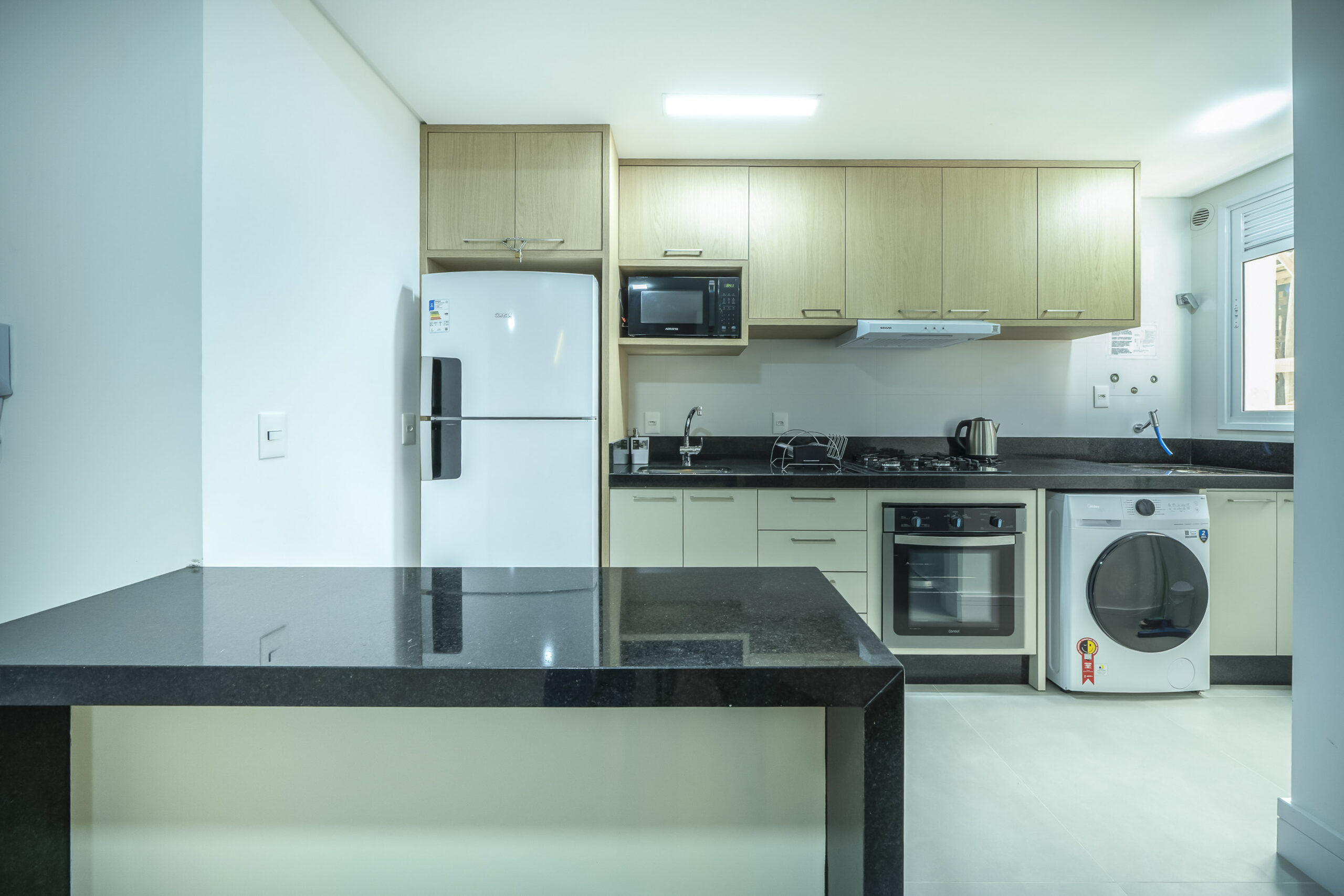 *Cozinha equipada com geladeira, micro-ondas e fogão cooktop